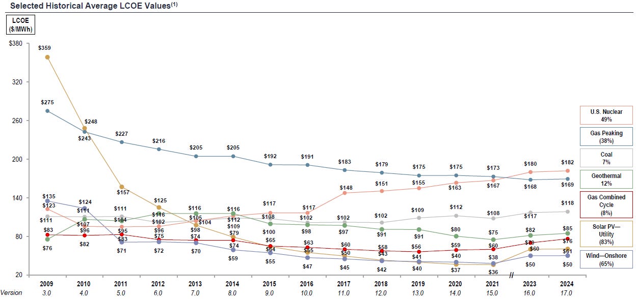 The renewables camp is quick to always bring up LCOE and how solar’s LCOE is much lower than other power sources (but they make sure to specifically call out coal and natural gas).