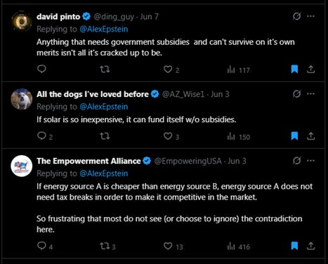 This is an interesting topic because I can see both sides, and it’s particularly relevant with the new House bill putting many renewable subsidies on the chopping block.